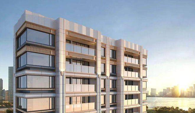 立面结构采用西方古典建筑经典制式“横三竖五”进行立面切分,如基座、中段、塔冠分为三段式,竖向阳台、飘窗分为五段式,极致中轴对称。设计以承载美为出发点,采用纯粹和质朴的空间和材质,从古典形态中提炼出简洁而有力的符号,强化了建筑的形式感和空间感。