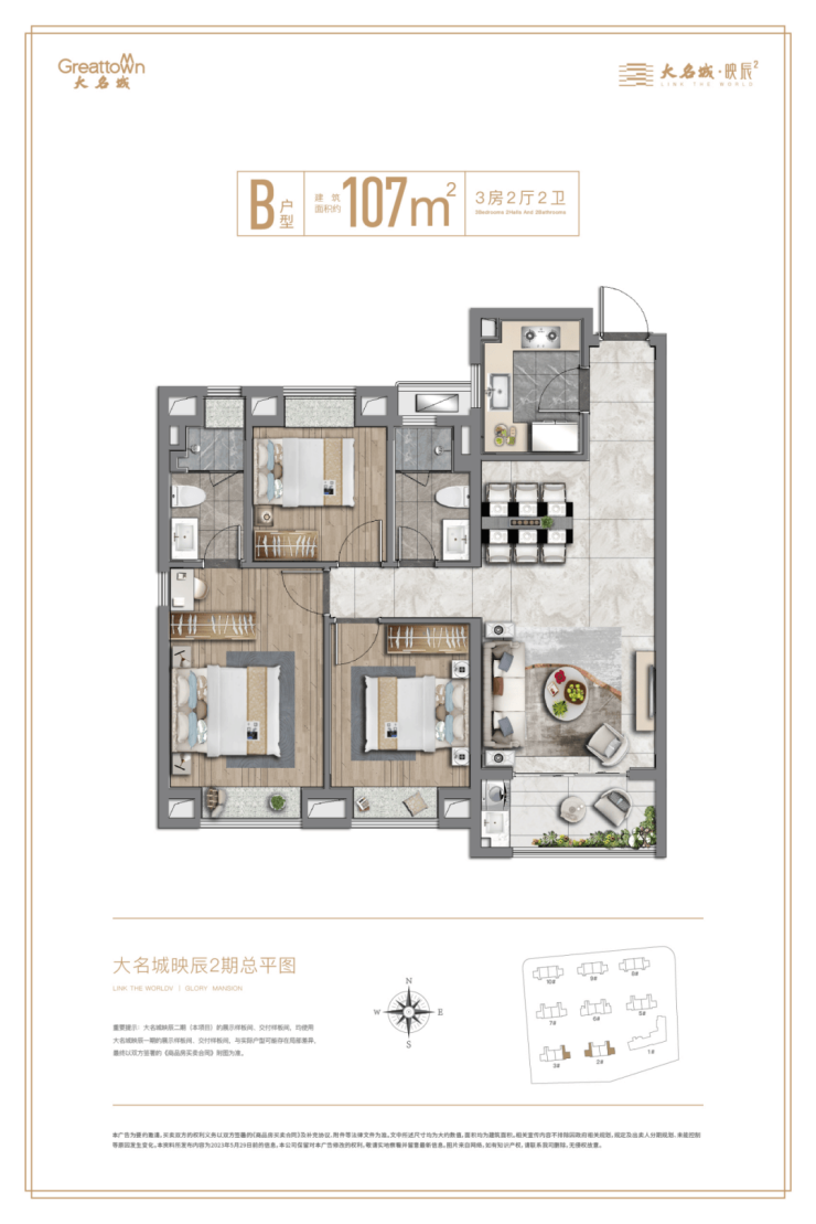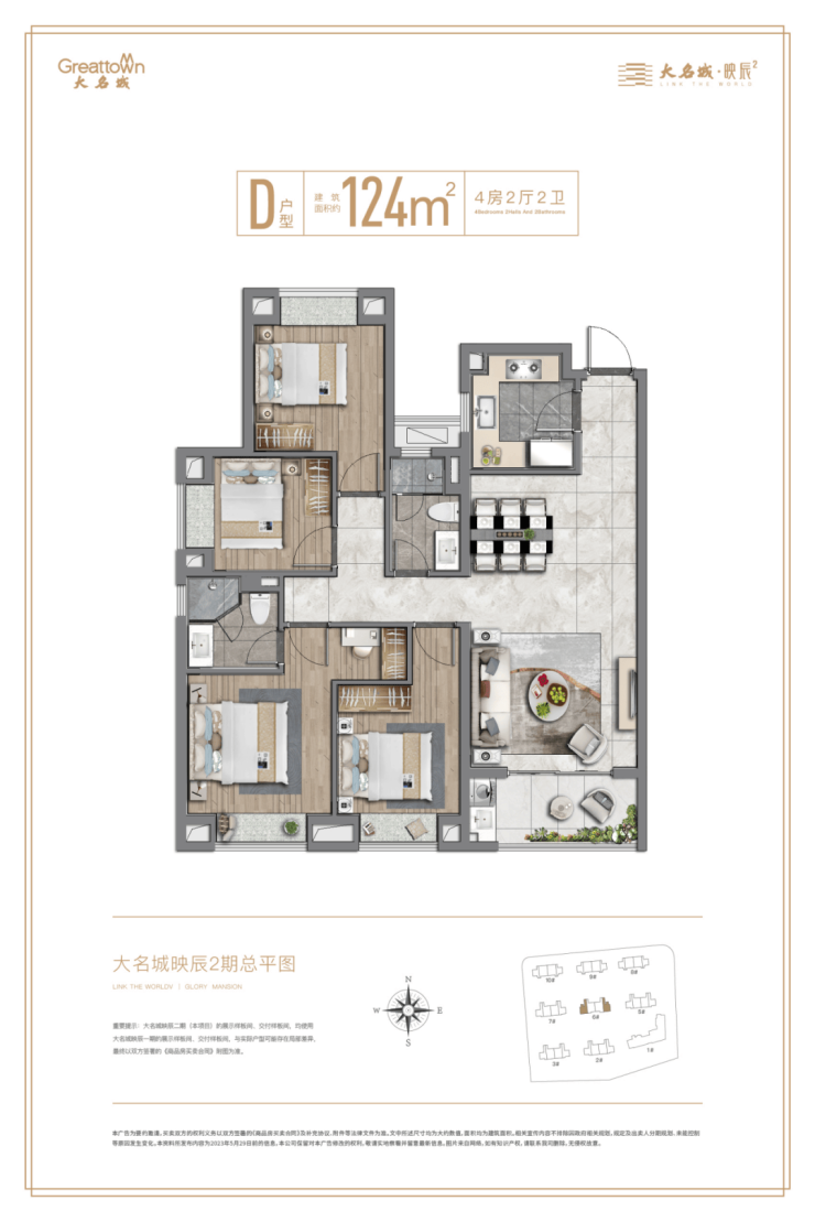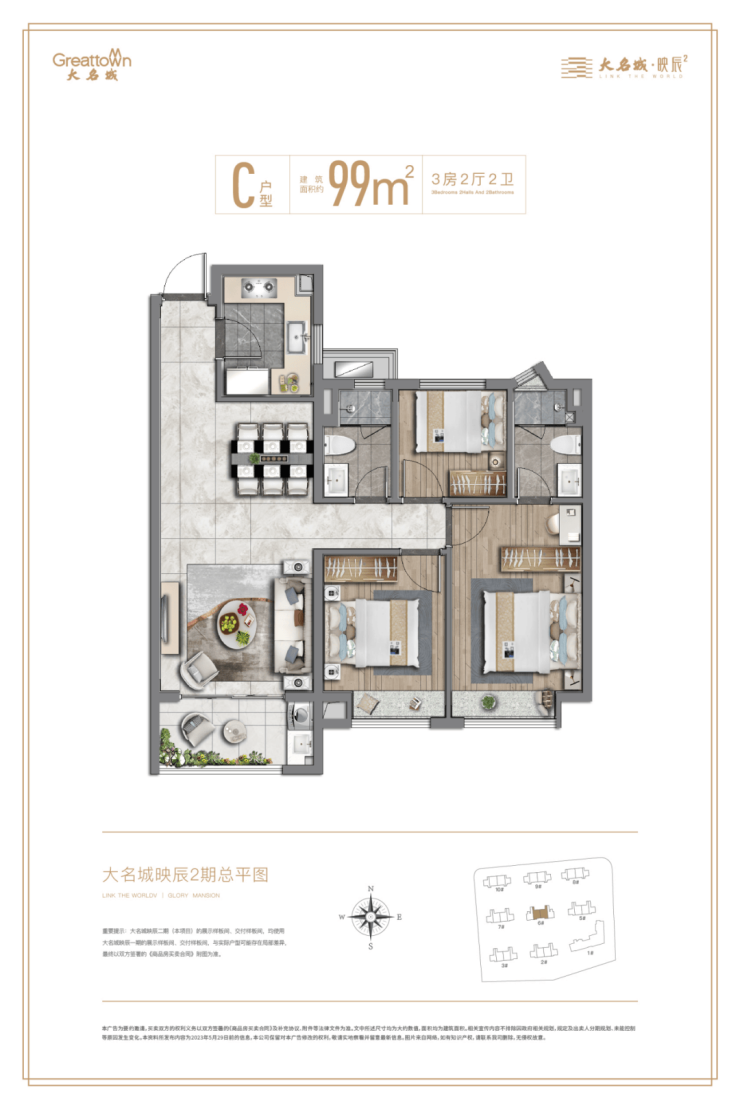除了地段和配套实力,映辰二期在产品的打造上也别具匠心。项目由双股上市房企、2023年房地产上市公司综合实力50强——【大名城】匠心打造,传承“紫金系”精工品质,在深刻洞察时代青年的居住需求后,二期新品在一期的基础上,进行多维度的升级,敬献亲水活力社区。