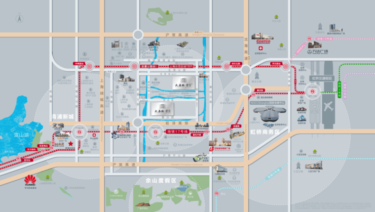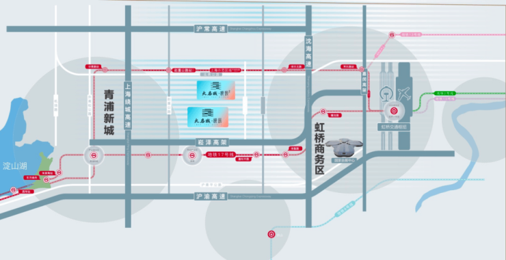 除了示范区线(在建),大名城映辰二期更有17号线的加持,从【赵巷站】出发, 6站直达虹桥火车站,无缝换乘2号线、10号线,快速通达中山公园、静安寺、陆家嘴、新天地、淮海路商圈等传统市区,出行十分便捷。