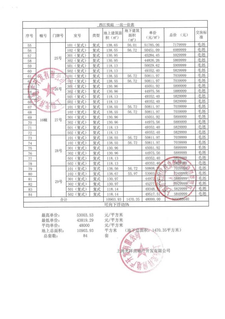 认购细则&一房一价表公示
