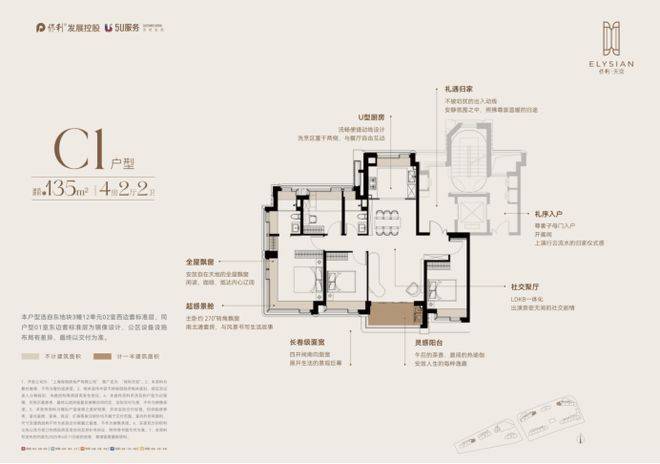 建面约135m²4放回行,室内格局是经典的飞机户型+南北通透LDKB一体化设计。是对于纯改善需求的量身定制,做了更尊奢的开间尺度。