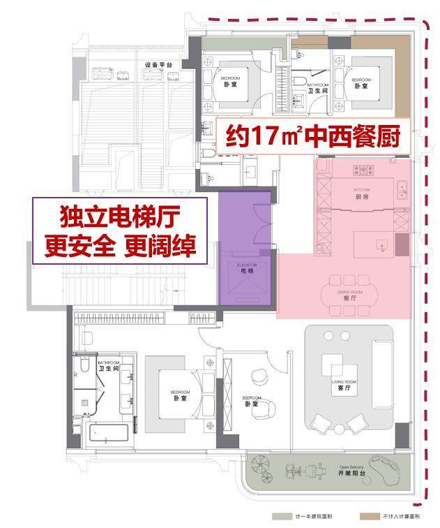 仪式感:该户型纵享一梯一户,独立电梯厅的配置,让归家更安全、空间更阔绰!