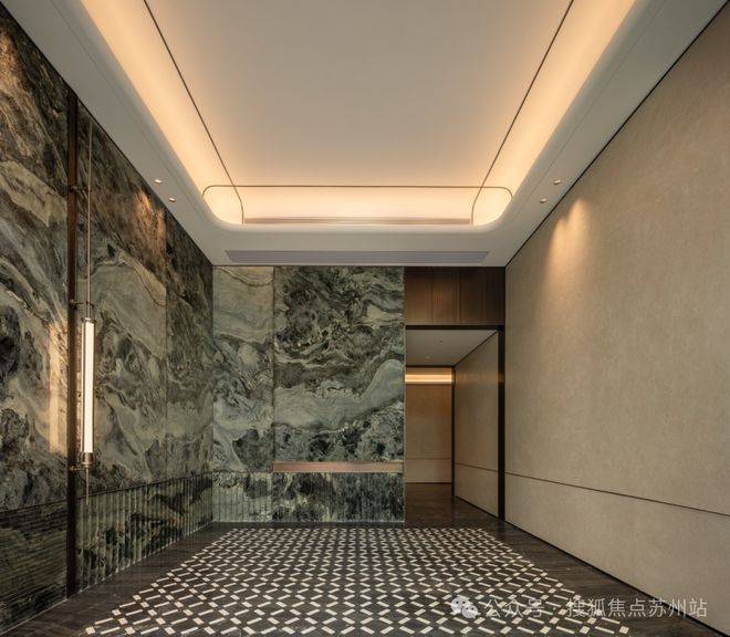 酒店式入户大堂的营造,精选雪山飞狐奢石,高山流水奢石、星白奢石等奢材。