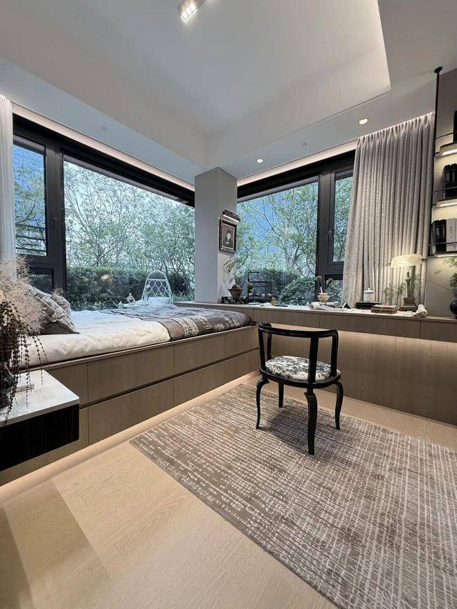 二层是居住区,所有房间空间尺度全部到位,边套主卧带270°全景飘窗,完美覆盖几乎所有家庭结构!