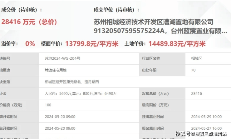 满园,即漕湖置地元和4号地块项目,位于相城区经开区康元路北、澄月路西,由漕湖置地&蓝宸置业&旭辉建管以底价28416万元竞得,成交楼面价为13800元/㎡。