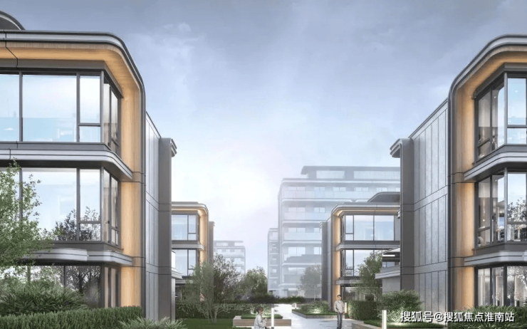 项目联排与叠墅的外立面均采用米白色铝板+深灰色铝板+香槟金铝板+浅灰色仿石涂料+金属格栅+深灰色仿石涂料,搭配大面积落地玻璃,尽显高端品质。