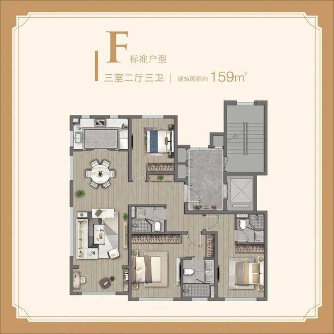 其次,所有户型室内层高都高达约3.15米,堪称“不做平方做立方”,多出的高度,即使装上空调、吊灯、地暖依旧非常舒适。