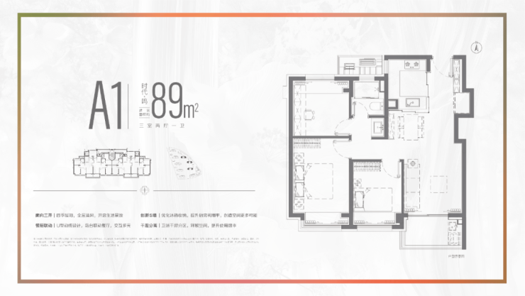 建面约89㎡(3室2厅1卫)
