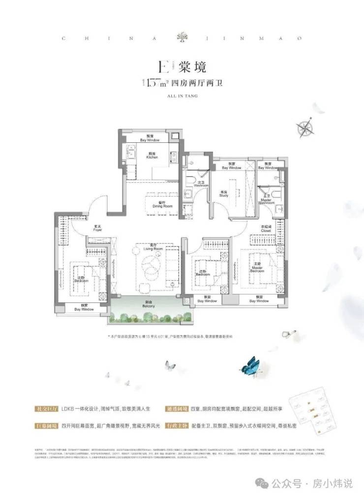 在产品打造上,金茂棠前展现了对“年轻、先锋、潮流”生活理念的深刻理解。项目推出了建面约85-178㎡的多元化户型,从精致的两房到阔绰的四房,精准地覆盖了从首置、改善到高端客群的广泛需求。其中,备受市场青睐的“全景舱”飘窗设计,以270度的开阔视野,将室外的景致最大限度地引入室内,让阳光与清风成为生活的常客。LDKB(客厅、餐厅、厨房、阳台)一体化的设计理念,则打破了空间的隔阂,创造出一个开敞、通透、互动性强的家庭核心场域,无论是朋友聚会还是家庭日常,都能在这里找到最舒适的相处方式。