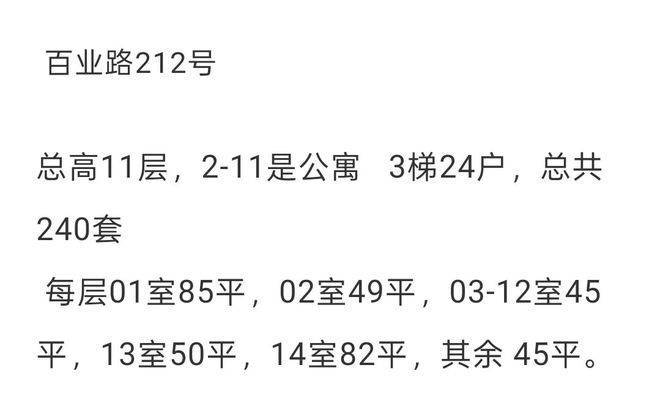 总高10层,2-10是公寓,每层24户。总共216户