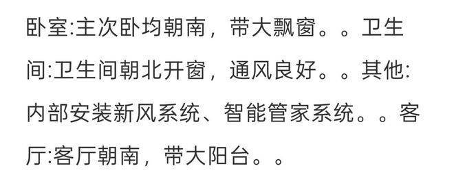 卧室:双主卧设计,均朝南带套卫与衣帽间。。 书房:书房朝南,带朝南大飘窗,室内采光极佳。。 卫生间:三个卫生间设计,日常生活非常方便。。 其他:专梯专户设计,出行非常方便。。