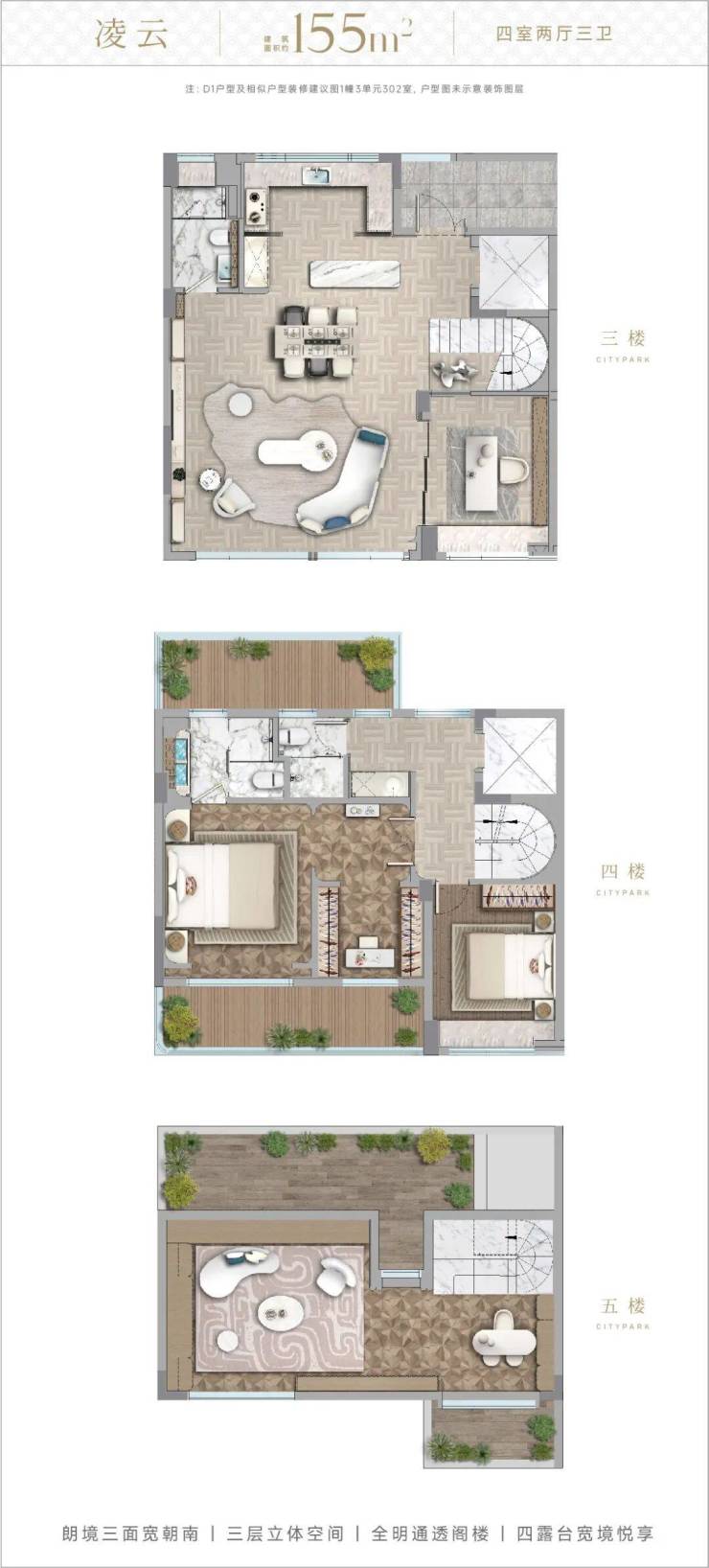 创新“三阳台分区功能”:景观阳台、生活阳台、次卧阳台各司其职,解决“晾晒占用休闲空间”的生活痛点;