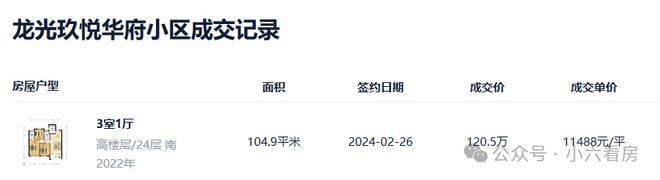 小区对面品质不如铂樾怡庭的二手房小区龙光玖悦华府最新成交一套二手房,单价1.15万。