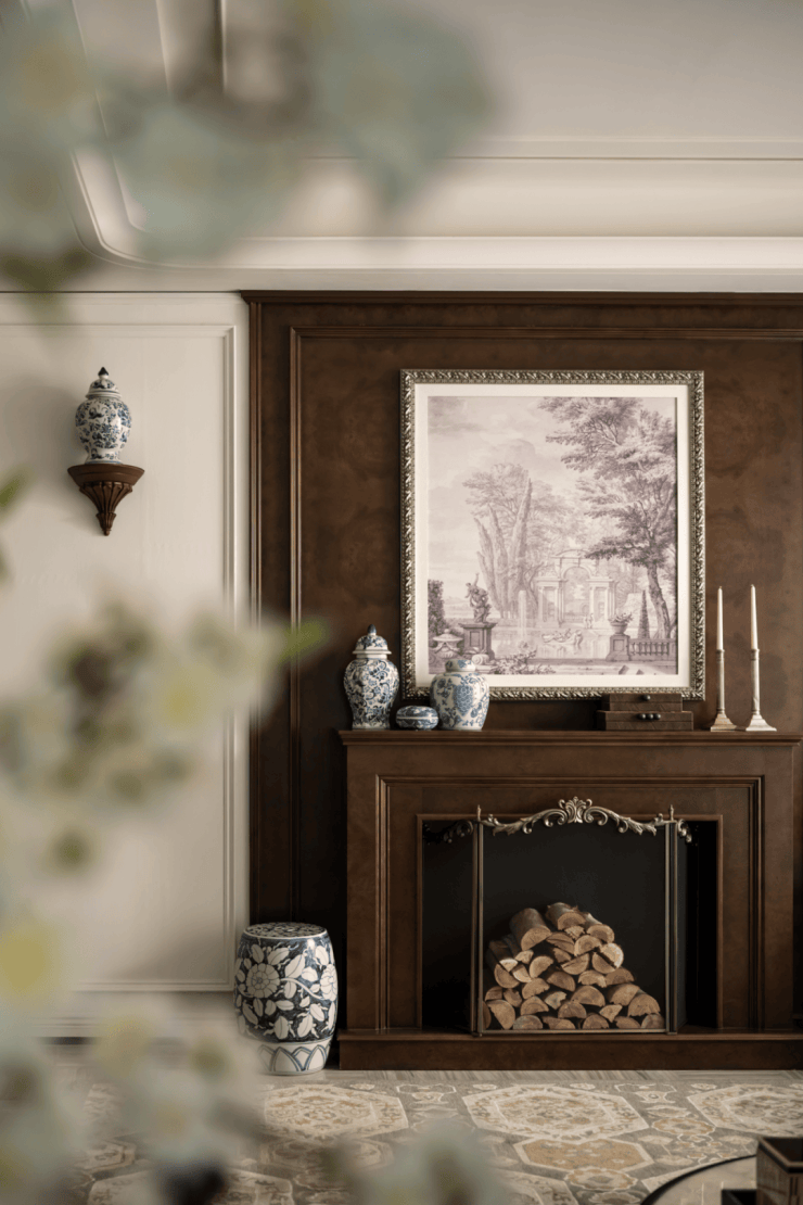 法式的壁炉和艺术画,中式的陶瓷,在特定的区域内,温暖和浪漫并存,诠释优雅。