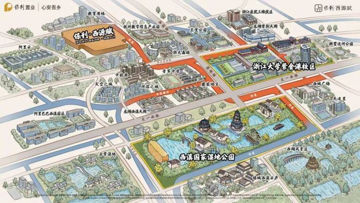 保利·西源赋府天生的区位优势,使得它更贴近浙大紫金港文脉和西溪水脉双重城市资源,基于浙大催生的诸多产业园区,也带来了更多改善需求,所以项目的目标人群也很明确:浙大科教人才+产业科技人才。