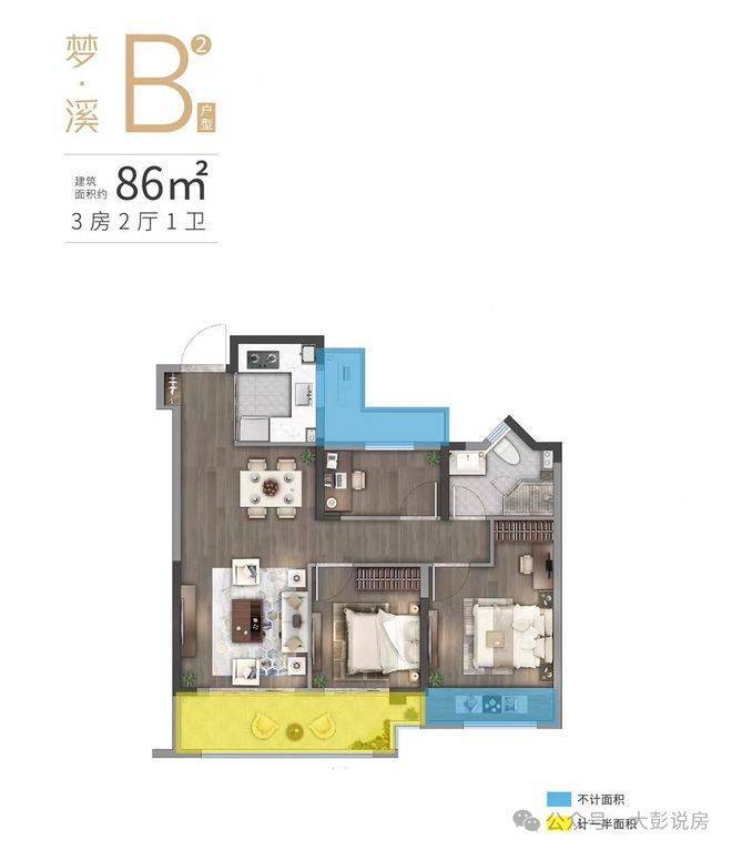 【梦溪B户型 】‼️建筑面积约86㎡‼️