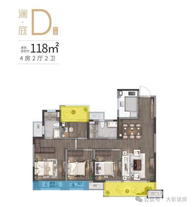 【澜庭D户型 】‼️建筑面积约118㎡‼️