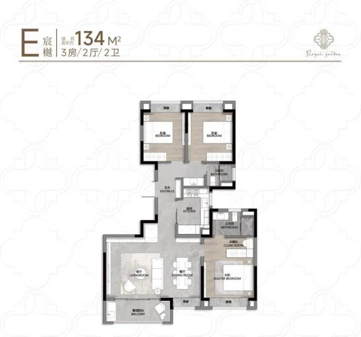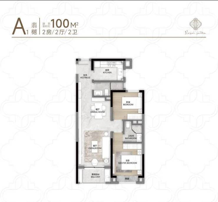 户型得房率75-79%(高于市面74%),建面约98-104㎡三房实现“小面积多功能”(如270°阳台、双套房设计);