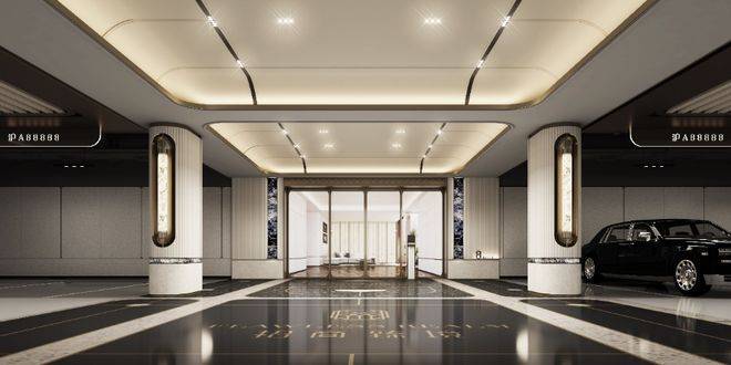 通过轻盈质感的玻璃大门进入内部,地下入户大堂我们采用了天然的采光天井设计,引入自然光源,地下大堂整个休憩区同样具备地上大堂的敞亮感。设置专属等候区,如同酒店式的首层大堂,极尽礼宾仪式。