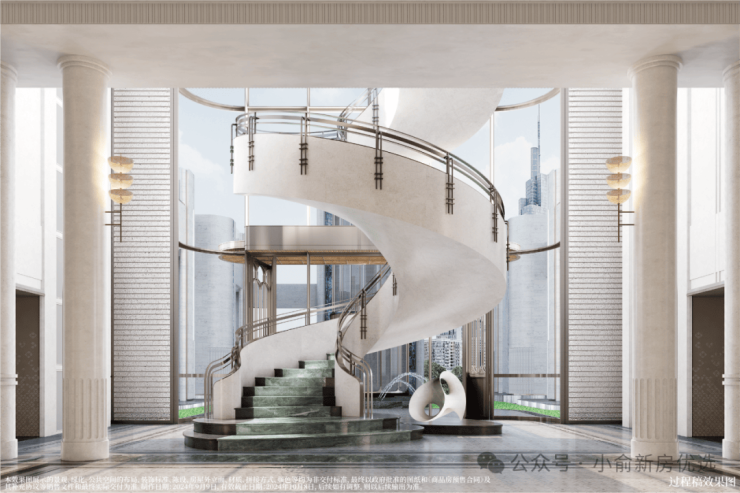 现代艺术与曲面质感的和鸣,建筑顶部沿用贵雅技法定制,考究流体力学,为徐汇滨江营造新城市流体建筑封面。
