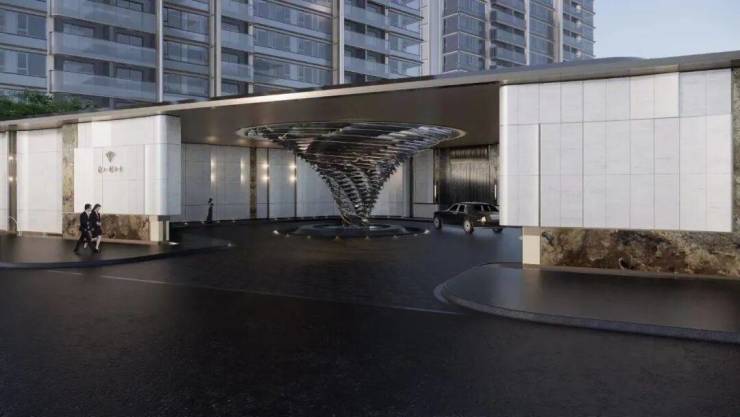 整体的归家落客尺度设计复刻了《周礼·考工记》中记录的建筑最高礼遇“面阔九间”的设计,同时,在归家酒店式落客空间,以山茶花元素为源定制了“海派漩心”艺术装置,将文化之美深入建筑的深处。
