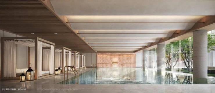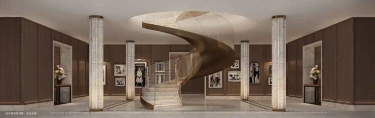 通过天际旋梯,就能到达下沉式会所有经典意式的奢华、更有老上海风情的海派艺术厅。在艺术的氛围中,位于地下的 流光水吧会客厅、云端健身仓、单独规划了儿童戏水区的双生泳池等空间都可以轻松通达。