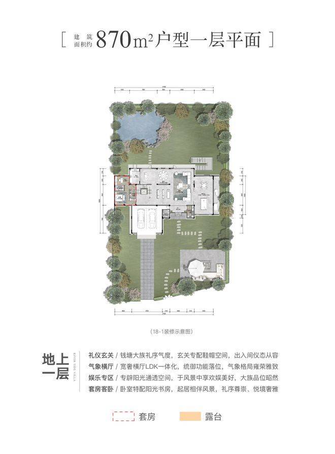 建面约300-870㎡的面积段设置,主力的建面约340㎡户型,在限价时代的杭州,已是起步户型最大的项目,更惊人的是,主力庭院面积达到了约80-300㎡,最大近2亩!站在庭院里,会有一时恍惚,这不是草坪,简直是绿茵场啊!