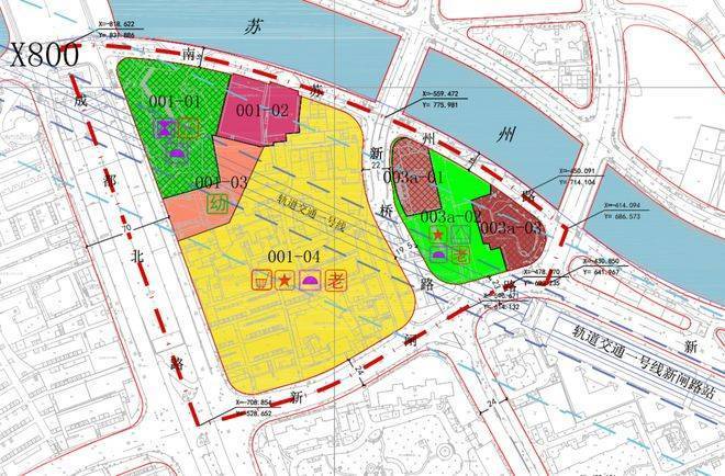 新昌路1号地块分为南北两块:南块,东至新桥路,南至新闸路,西至成都北路,北至成都北路1012弄;北块,东至新桥路,南至新桥路51弄,西至九子公园,北至南苏州路。