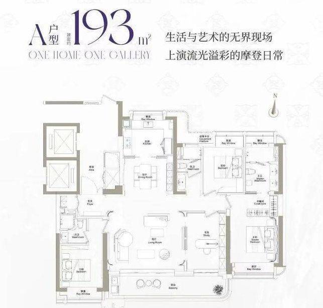 建面约155-193㎡产品,室内约3.15米层高,采用两梯两户的设计,尽显尊贵气度!