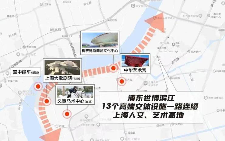 世博-后滩浓缩了全上海规格最高的文体配套,梅赛德斯奔驰文化中心、中华艺术宫、上海大歌剧院、世博展览馆、久事国际马术中心等都在这里,形成一条上海独具一格的文化艺术带。