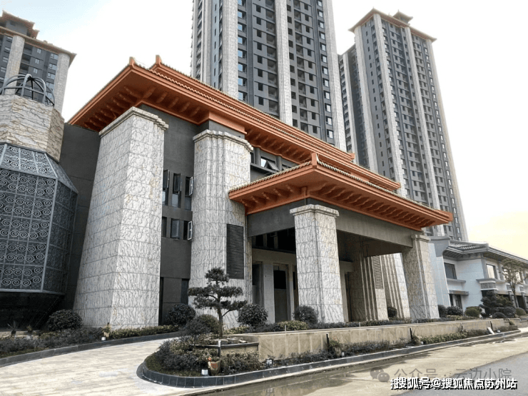 泗泾绿中海占地4.7万方,由9栋16-30层的新中式住宅组成。项目外立面采用的是天然石材和真石漆,屋顶采用四面斜坡设计。