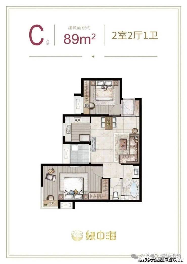 建面约87-89㎡2房2厅1卫