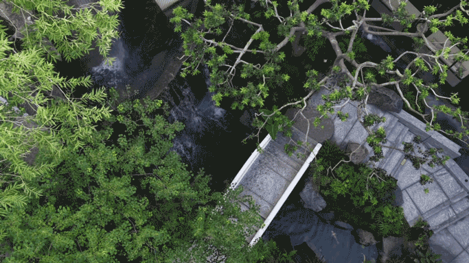 中景深远——白玉石桥,跨越溪涧,窥见幽谷深处。