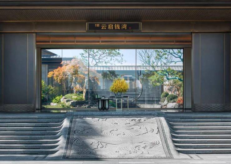 云启钱湾的大门,归家排场拉满踏入重檐悬山顶的入园门楼前,你要先登上水纹御道的九级台阶,再穿过那对超600斤的铜狮……每一步,都像拾阶进入一座私属的桂殿兰宫。论归家排场,它几乎是之江路江景房的“门面担当”之一。