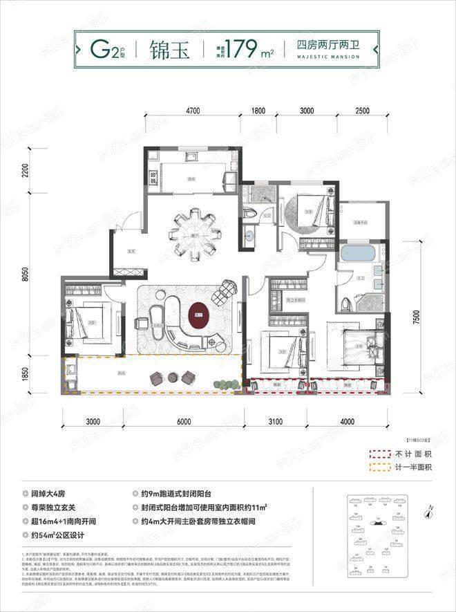 一层4户,户型建面约175㎡、179㎡,阔绰大四房、四开间朝南、超16m面宽、约54㎡LDKB一体化超大社交空间,户型设计满足全家人生活需求.
