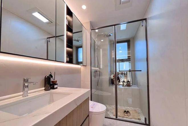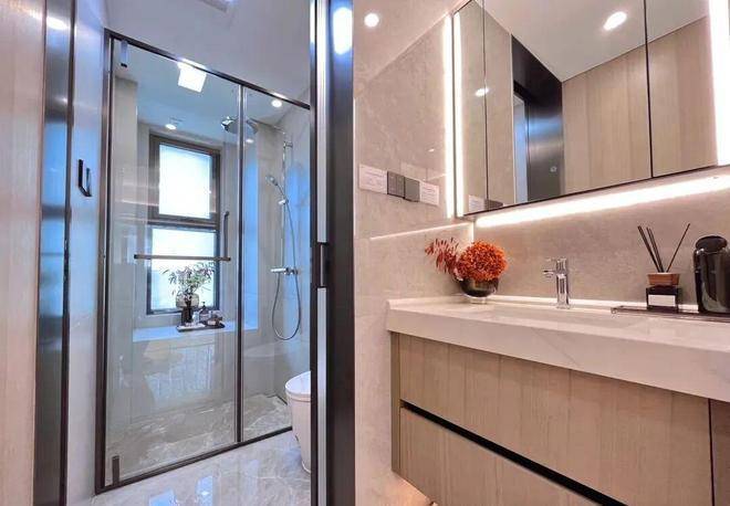 一般而言,主卫和次卫能拥有窗户达到全明采光已经称得上优秀了,而这套户型的两个卫生间均都有飘窗,丰富更多收纳可能性。