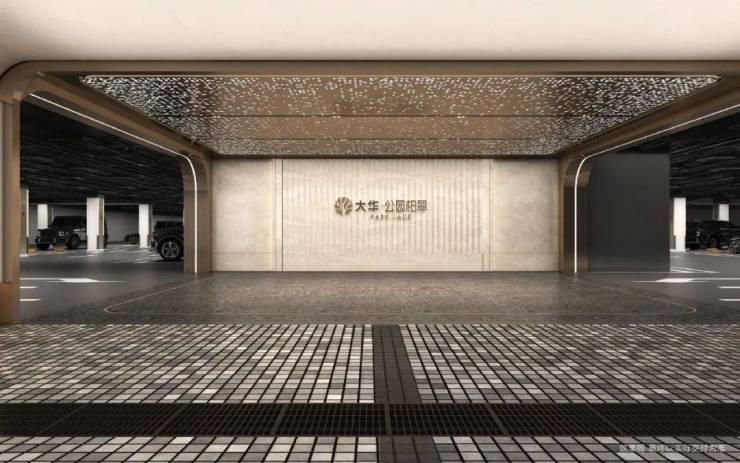 整体迎宾空间耗材 约1800片大理石 , 这样的大门规格、石材用料以及用心程度, 无不体现出大华公园柏翠对标豪宅的决心。