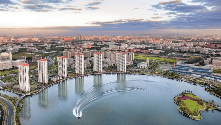绿地景观沿黄浦江和兰香湖沿岸生长形成有序又自然的生态景观。