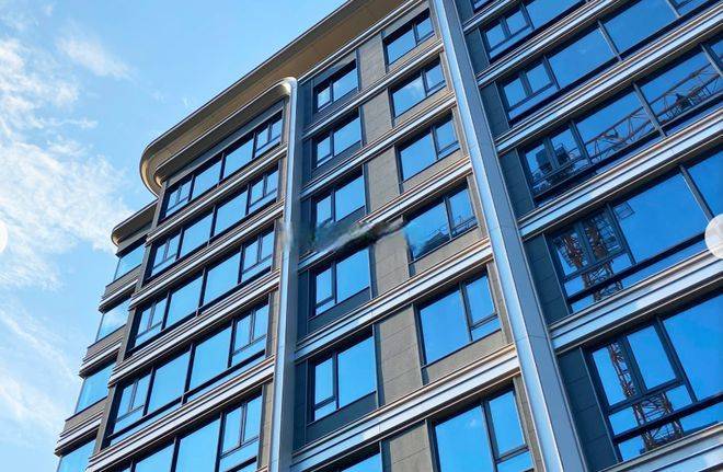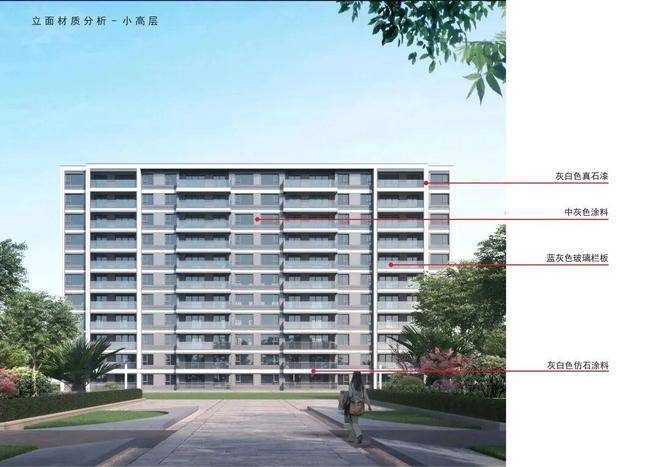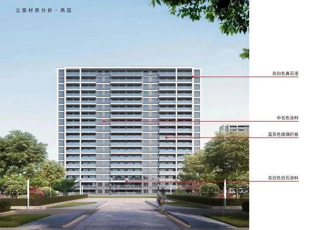 外立面建筑风格以灰白色为主色调,浅蓝色大尺度的观景窗,提供极佳的采光和视野,使整体造型平整大气,高耸挺拔。