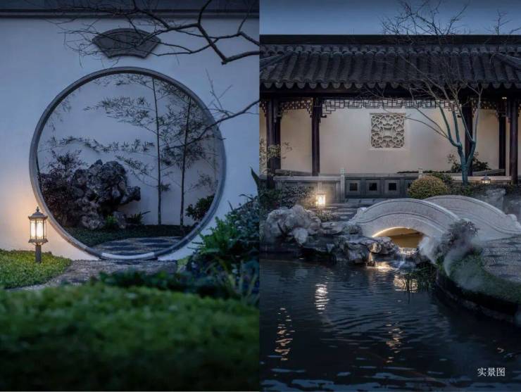 取意江南名园退思园“横向布局,四时皆景”的造园理念,打造“一园八景”(桥影、残月、松涛、藏书等),以三轴景深(南北礼仪轴、东西文化轴、中央景观轴)构建层次丰富的园林长卷,串联全园景观节点。中央花园以大水面锦汇漪为核心,搭配太湖石叠山、曲廊、亭榭、垂虹桥复刻景,花木掩映、水景贯穿,实现“户户临景、步移景异”的沉浸式江南园林体验,再现“虽由人作,宛自天开”的意境。项目整体容积率仅1.05,绿化率30%,低密布局进一步放大园林景观的通透感与静谧感,营造园中有园的雅致氛围。