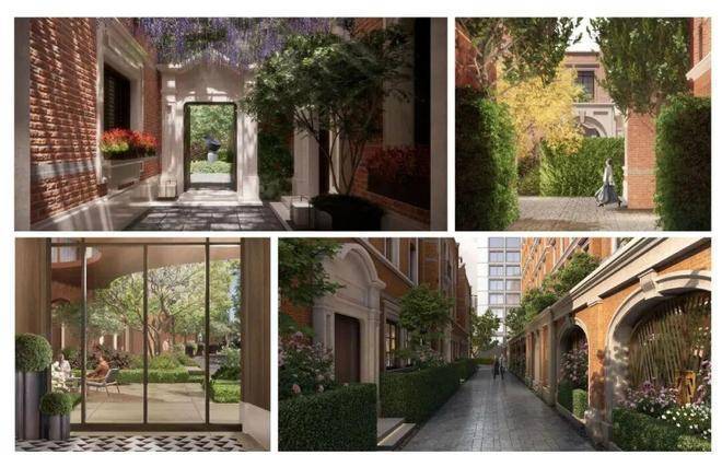 风貌里弄浓缩了中西合璧的石库门文化,采用原汁原味的红色陶砖镶嵌灰砖再现传统墙面。巷道尺度关系亲密而不拥挤,承载着海派生活的高级烟火气。