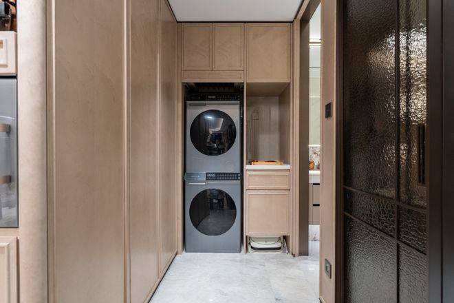 S墙嵌入双开门冰箱,一下子解放了餐厨空间。