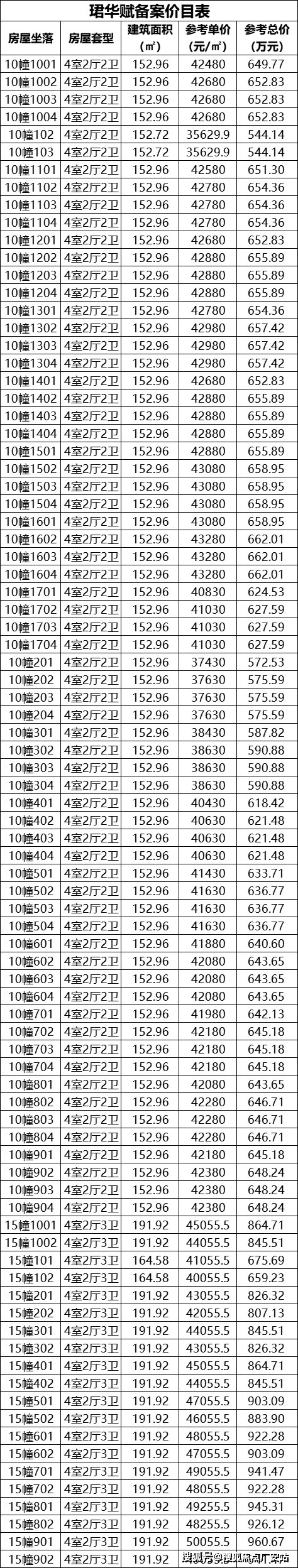 一房一价表如下: