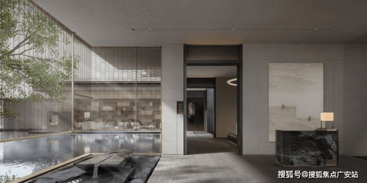 各个空间与中央的景观水院通过长廊相互衔接,隐约显现区隔,阡陌纵横通达,同享一片水院,又相互独立,拥有截然不同的景致体验,游园的氛围就这样慢慢荡漾开来。