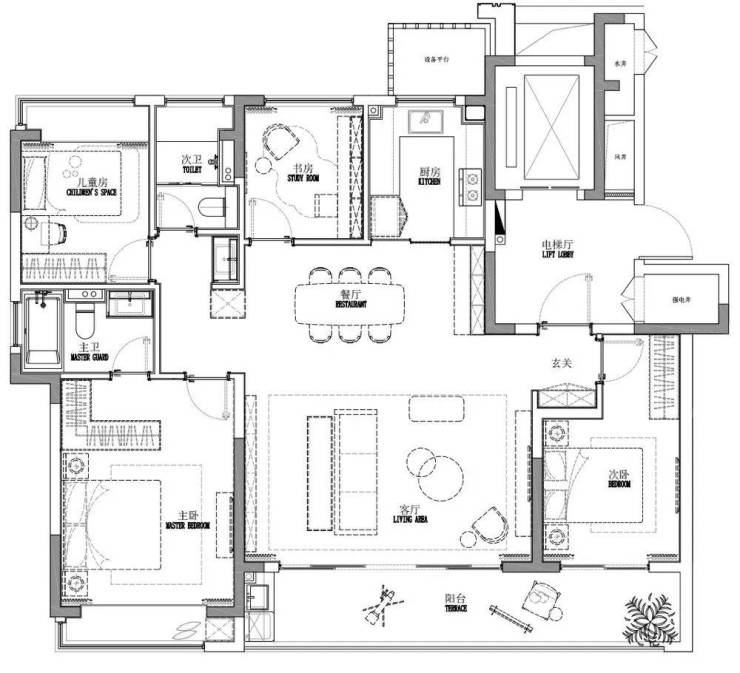 设计标准:精装交付,配备中央空调、新风系统、地暖;