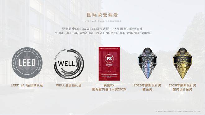 项目拿下亚洲首个住宅LEED&WELL双金认证,坐拥绿色低碳+人居健康双国际顶配;同时包揽亚洲不动产奖Property Guru景观优秀奖、FX英国室内设计大奖、AHLA亚洲人居景观匠心工程类金奖、2024年国际建筑奖International Architecture Awards、2026年缪斯设计奖铂金奖和室内设计金奖...