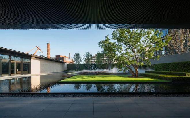 搭配约150米“小黄浦江”水景,整个园林基于“less is more”少即是多的概念,做了大量的留白,大草坪的静与小黄浦江的动相辅相成,实现归家即入园,与自然无限链接。
