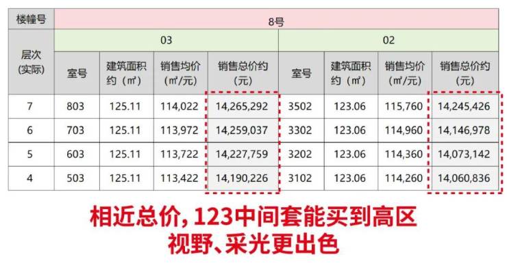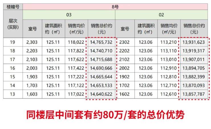 首先,中间套与同楼层边套相比,总价差约80-90万,差额相当于一辆豪车价。