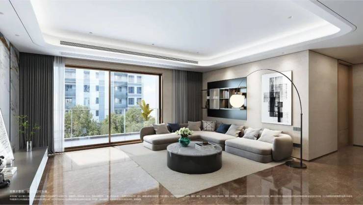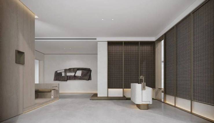 室内设计,秉承摩登东方的理念,设计以人、生活为中心,从空间本体和情感层面都回归生活,270度环幕采光,开放式会客厅设计,兼具尺度感与功能性。