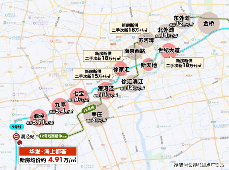 12号线,莘庄的新房价格8万/㎡,再往前的徐汇滨江、南京西路等市中心的价格已是高不可攀。